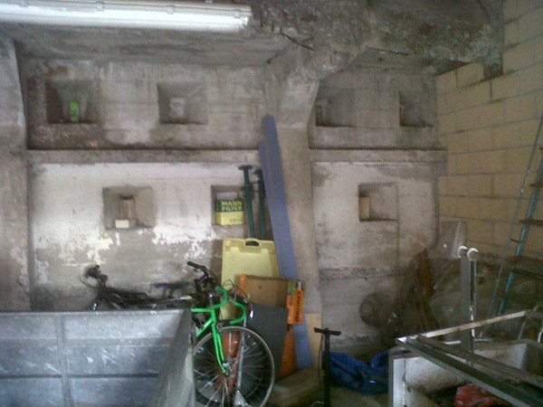 Però la sorpresa va ser majúscula quan precisament ens va arribar la noticia que havia aconseguit que els propietaris d’una casa ens obrissin les portes del seu garatge. Doncs resulta que allà dins, entre trastos i cotxes hi havia un tros de mur perfectament identificable, en el que no feia falta imaginar res de res. Es veien els dos nivells d’espitlleres, els seus reforços verticals, les estructures per permetre que una segona de fila de gudaris disparés per sobre de la primera. Tot plegat un honor que per bé que desitjat, no esperat per saber de la seva situació en una propietat privada. Encara que no expressades en aquell moment, vull donar les gràcies al José Àngel per les seves gestions, que estaven fent que les meves expectatives s’estiguessin superant de llarg.