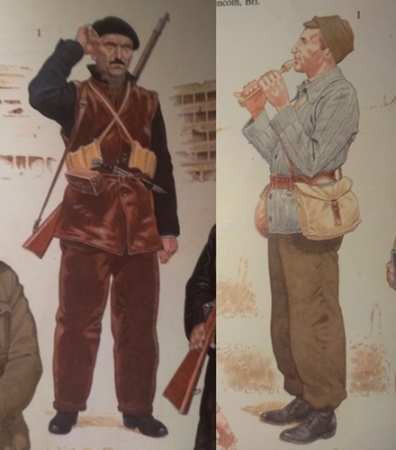 I ara entrant en la indumentària, tema no tractat en l’anterior sortida de retroexcursionisme, aquesta vegada la selecció ha entrat en Guerra Civil Espanyola, fent un popurri del tot creïble de com podria haver anat un Brigadista Internacional. Voluntari estranger arribat per ajudar a la República Espanyola en la seva lluita contra els revoltats ubicable entre novembre de 1936 i abril de 1937. Triant una barreja de roba majoritàriament civil composta per bota, pantaló de pana resistent, jersei, passamuntanyes i del que en sobresurt el jaquetò de pell Jerkins, ja utilitzat a la primera guerra mundial. Portant per damunt només el sarró on portava les meves coses, i, es que com comprendreu, portar cartuxería i arma no hagués estat el més adequat.