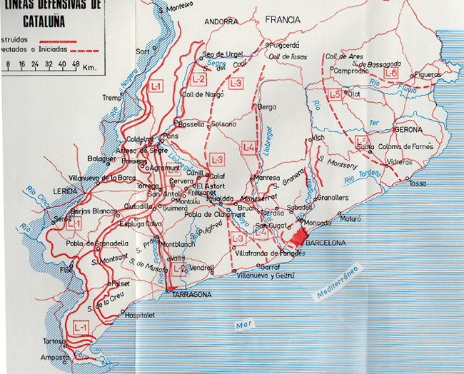 La defensa contra la ocupació franquista de Catalunya, que en queda.